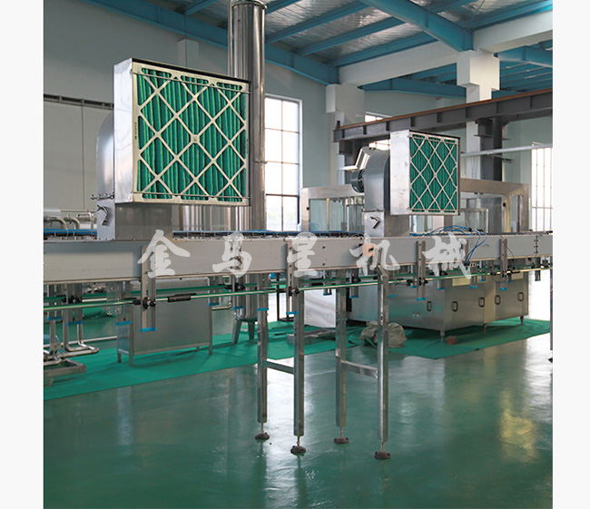 ★   整機采用懸掛式卡瓶口輸送機結構,從而使整線輸送瓶子更為可靠。不同瓶型只需調整輸送帶高度及少量的變更附件,更換瓶型更快捷、省力;